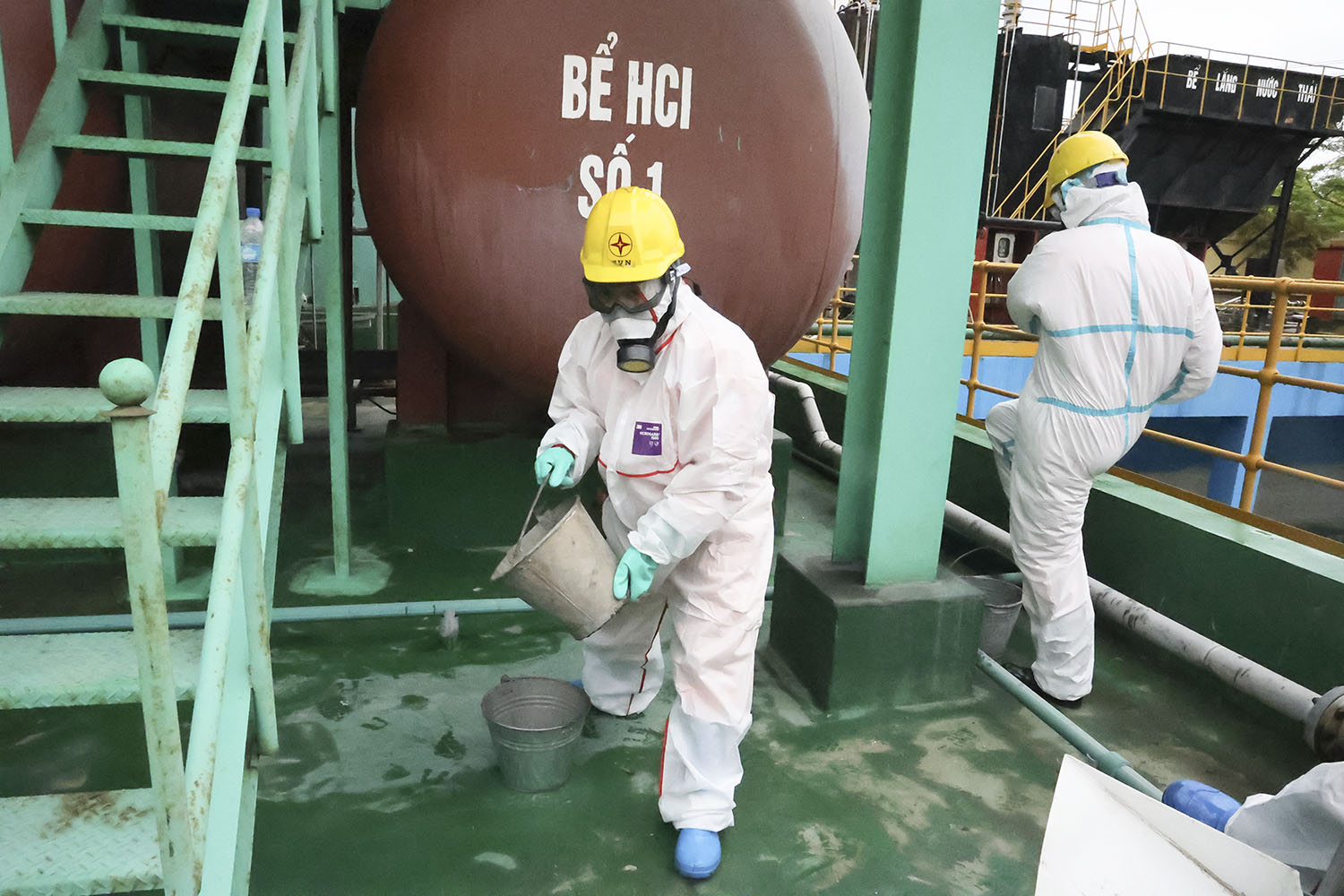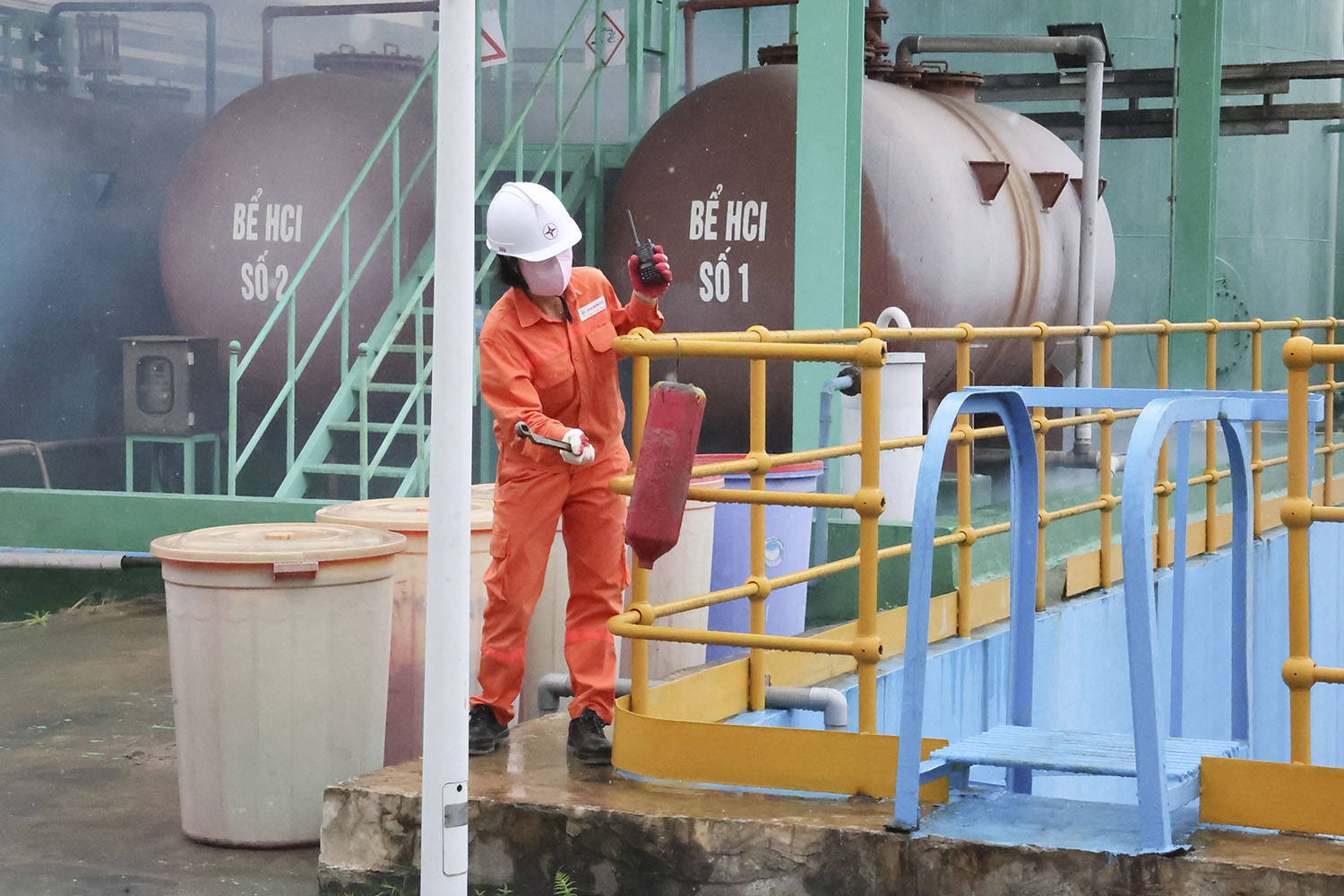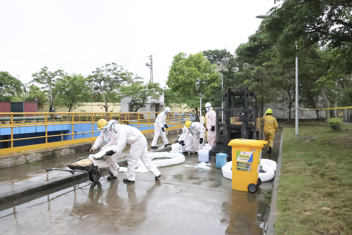 Diễn tập được triển khai theo ba giai đoạn: phát hiện - báo động - ứng phó tại chỗ; ứng phó mở rộng - ngăn chặn - khắc phục; kết thúc - tổng kết rút kinh nghiệm. Các lực lượng tham gia đã thực hiện đầy đủ các nội dung theo kịch bản: sơ tán người khỏi vùng nguy hiểm, sơ cứu nạn nhân nhiễm khí độc và bị thương, khoanh vùng và thu gom hóa chất/dầu tràn, kiểm soát nguy cơ cháy nổ, xử lý môi trường sau sự cố.