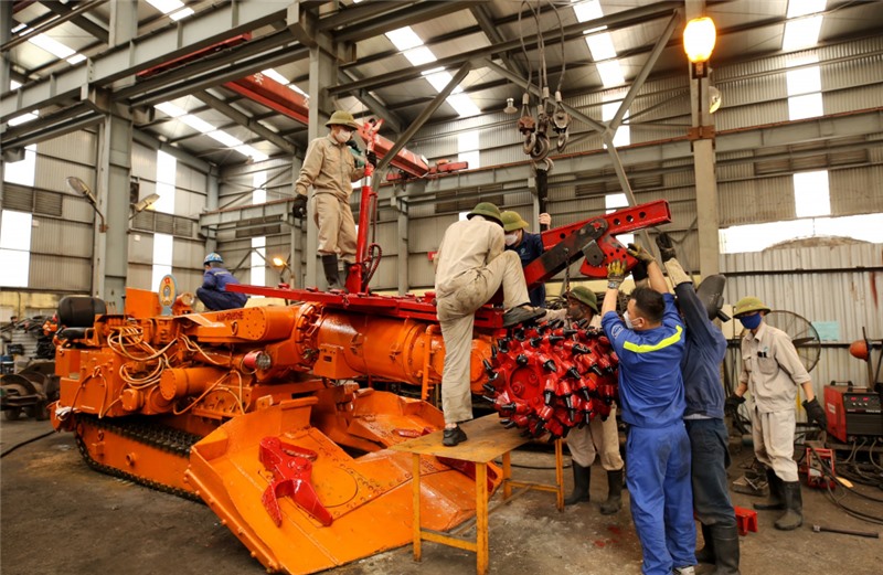 Đội ngũ kỹ sư, thợ cơ khí, thợ cơ điện có tay nghề cao của Công ty Than Nam Mẫu sửa chữa phục hồi, máy đào lò AM-50ZRE.