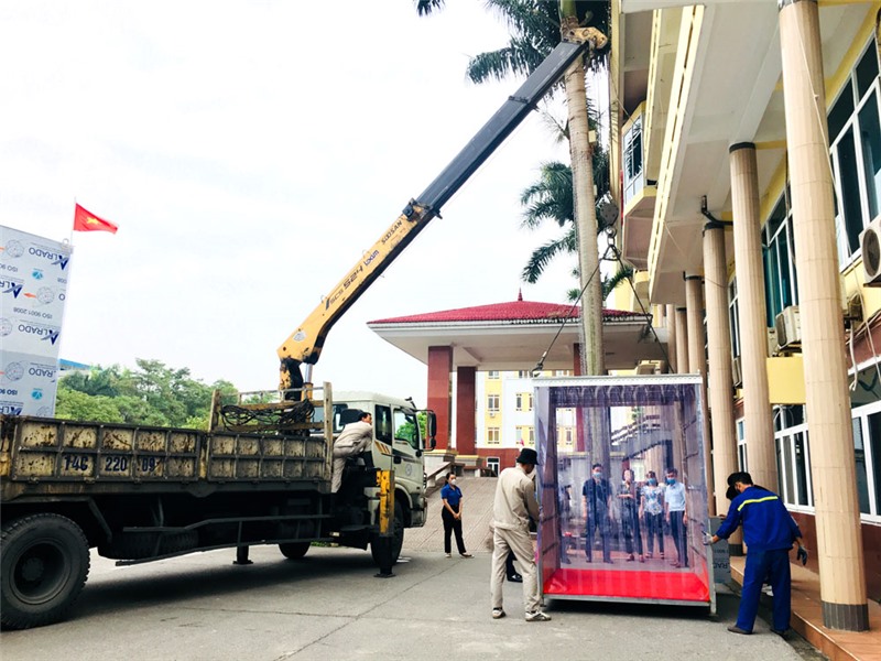 Vận hành thử nghiệm buồng khử khuẩn toàn thân sau khi lắp đặt.
