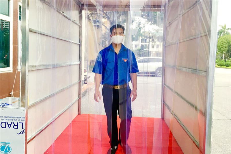 Buồng khử khuẩn toàn thân có kết cấu nhỏ gọn, sử dụng dung dịch muối ion hóa dạng phun sương mịn trong buồng kín, kết hợp thiết bị cảm biến hồng ngoại, khi có người đi vào thiết bị sẽ kích hoạt phun sương tự động 30 giây mỗi lần. Dung dịch sát khuẩn được phun 360 độ thông qua hệ thống vòi phun được gắn tại thân buồng khử khuẩn, đảm bảo dung dịch dạng sương phủ kín toàn thân, giúp khử khuẩn tối đa, có khả năng diệt khuẩn cao và an toàn cho người sử dụng. Đây là công trình được nghiên cứu, chế tạo thành công bởi những kỹ sư trẻ thuộc Phòng cơ điện, Công ty Than Nam Mẫu, thiết thực chào mừng 89 năm ngày thành lập Đoàn thanh niên cộng sản Hồ Chí Minh.