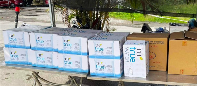 Công ty TNHH MTV Thương mại và Dịch vụ Hồng Phát trao các phần quà là nhu yếu phẩm cho lực lượng làm nhiệm vụ tại chốt kiểm soát dịch Covid-19 cầu Đá Bạc.