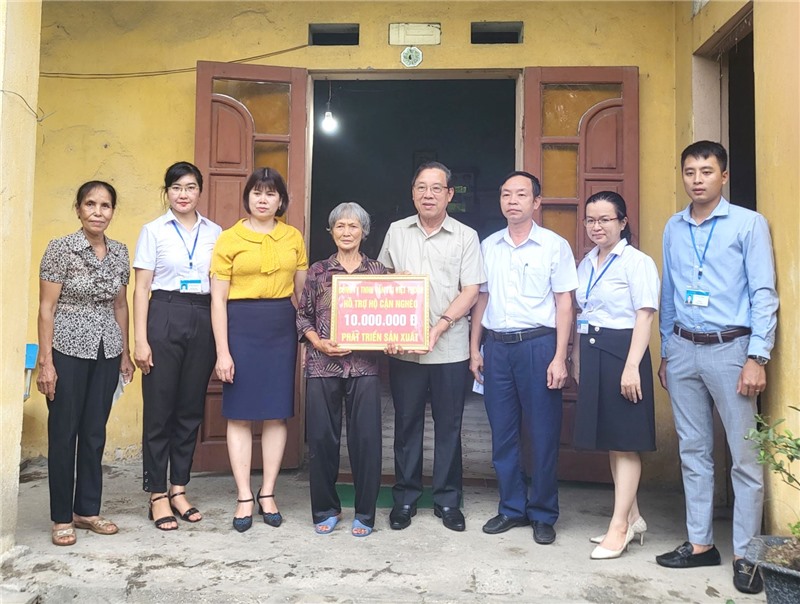 Công ty TNHH Vận Tải Việt Thuận trao hỗ trợ 10 triệu đồng cho gia đình bà Đinh Thị Thơm, khu Bạch Đằng 1, phường Phương Nam.