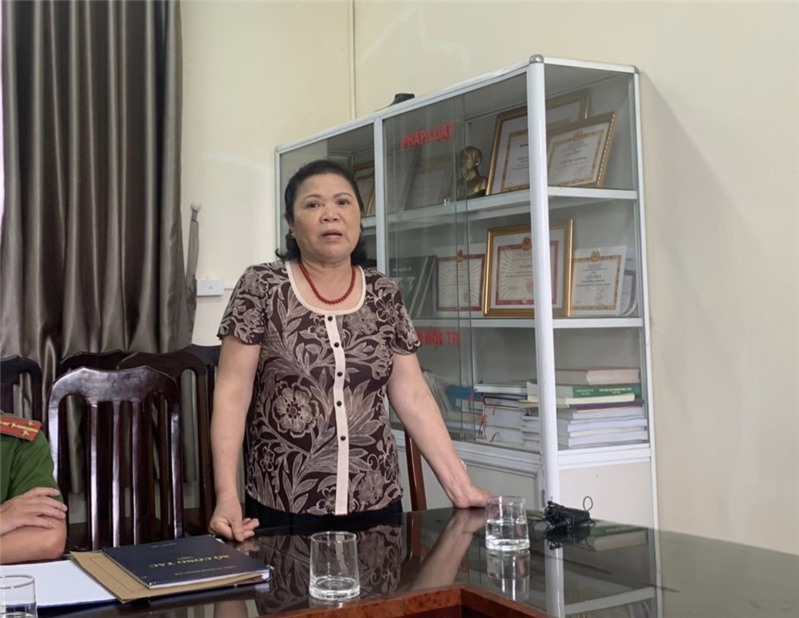 Bà Nguyễn Thị Thái trình báo tại cơ quan công an. (Ảnh: Hồng Ngọc).