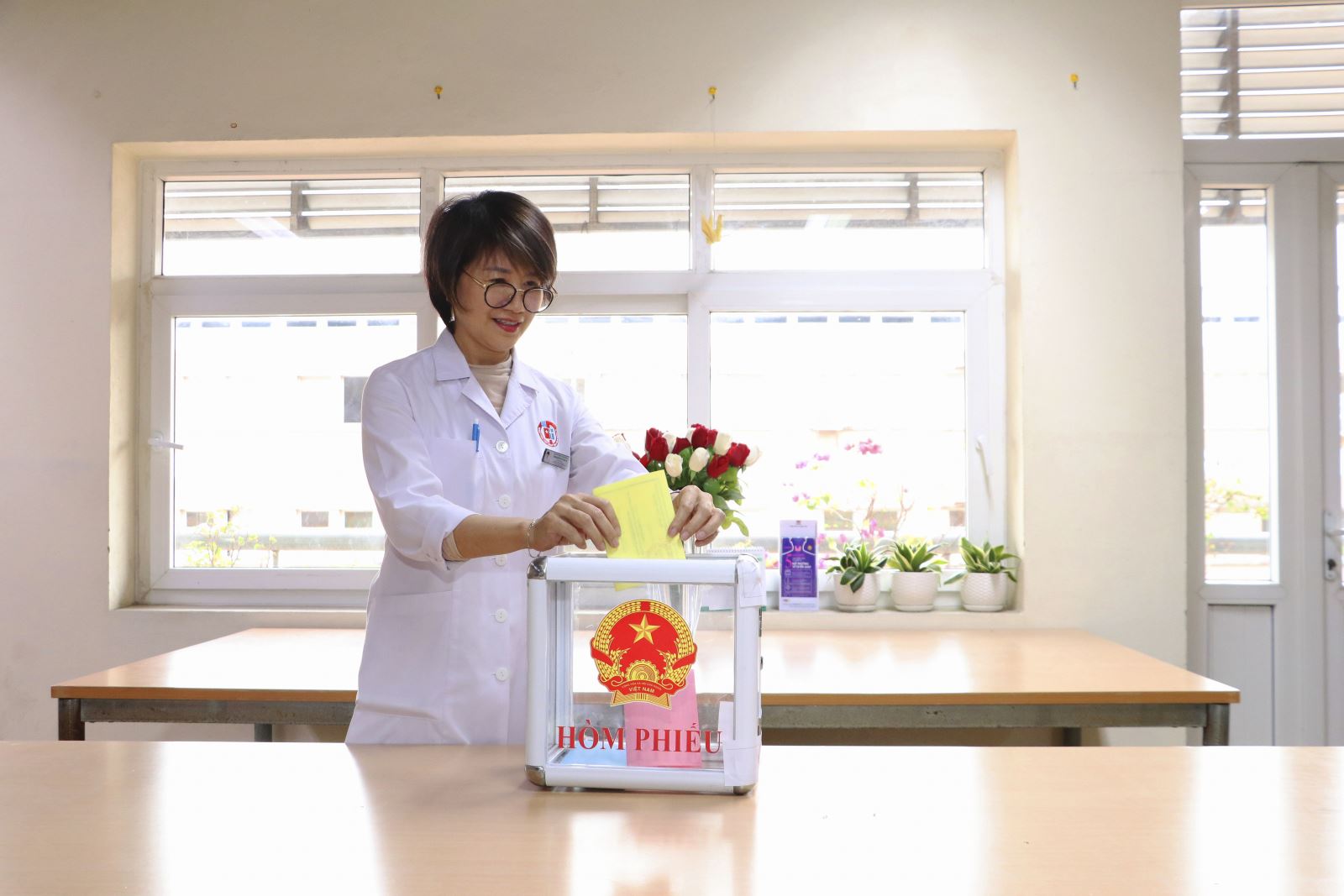 Dù bận rộn với công tác chuyên môn, các y bác sĩ Bệnh viện Việt Nam – Thụy Điển Uông Bí vẫn rạng rỡ thực hiện quyền công dân ngay tại nơi làm việc thông qua hòm phiếu lưu động.