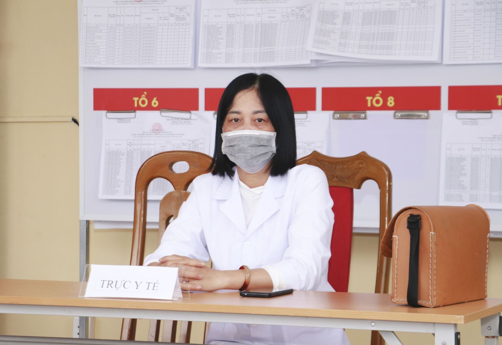 Cán bộ y tế túc trực thường xuyên tại khu vực bỏ phiếu, đảm bảo an toàn sức khỏe cho cử tri trong ngày hội lớn.