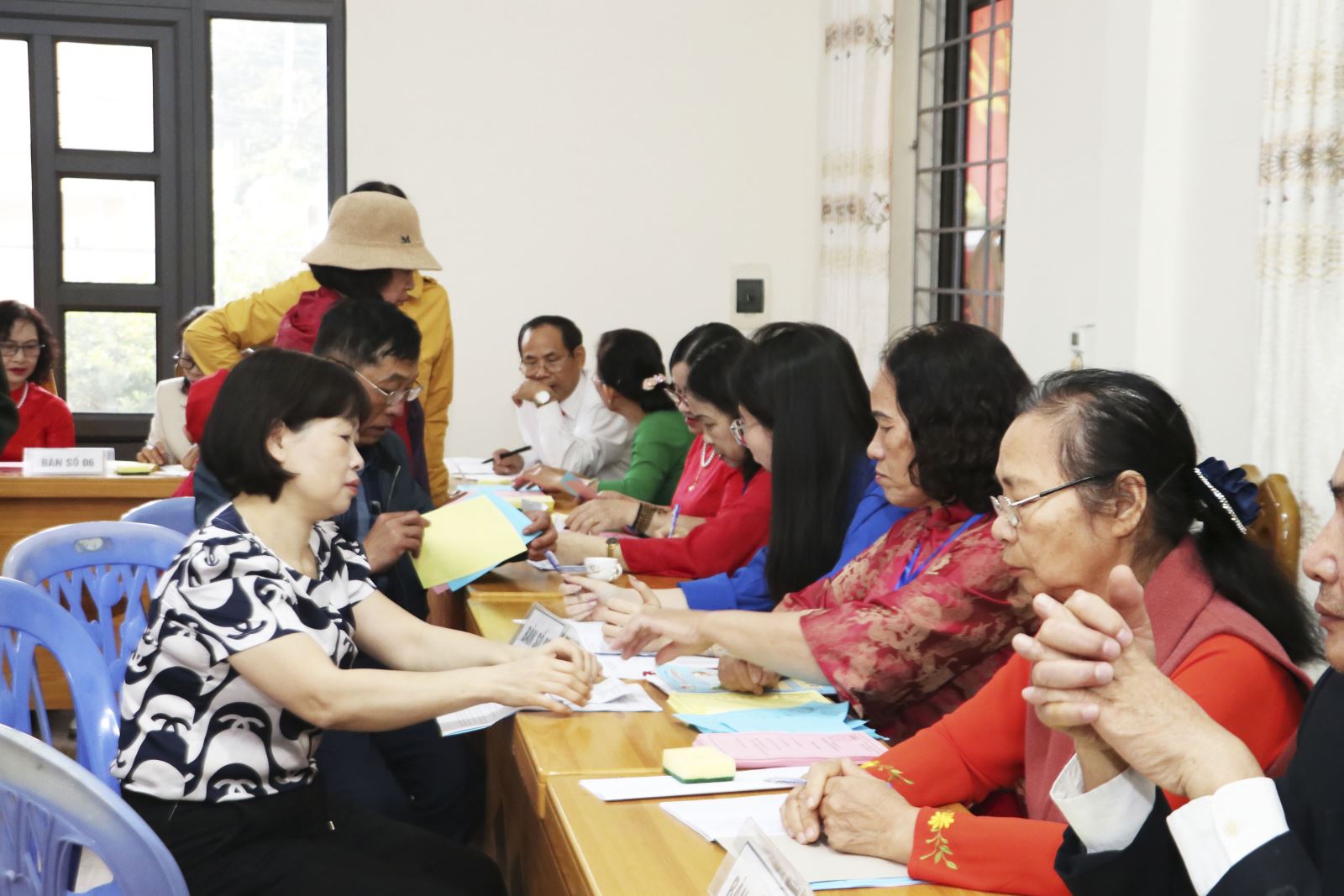 Các bàn hướng dẫn và tiếp đón cử tri luôn làm việc với tinh thần khẩn trương, niềm nở, giúp quy trình bỏ phiếu diễn ra nhanh chóng, đúng pháp luật.