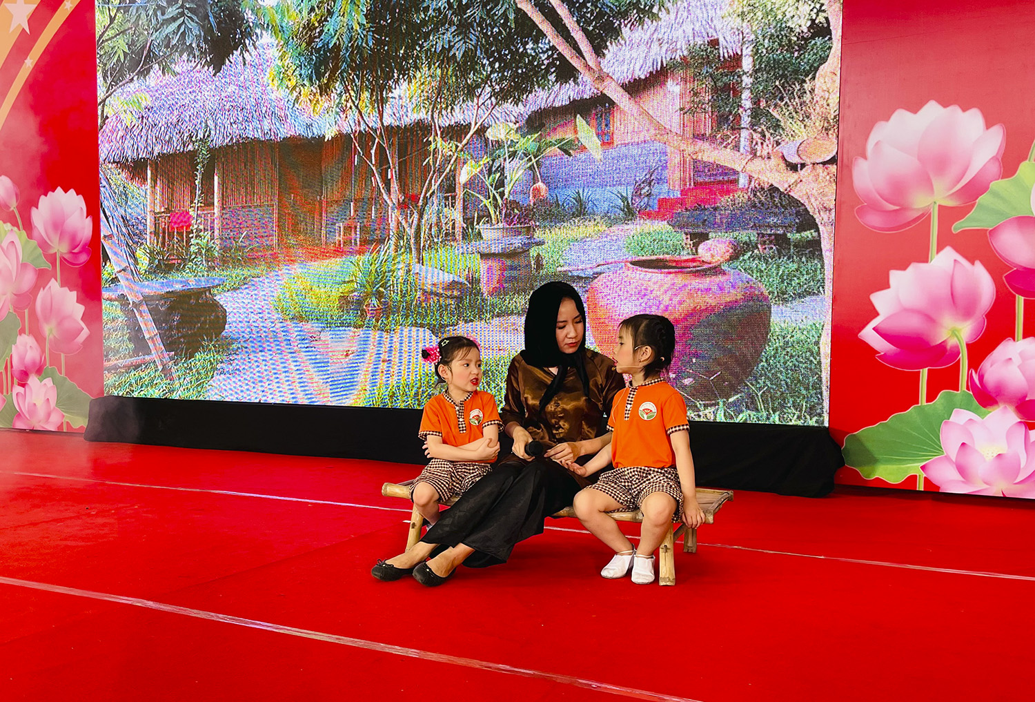 Với mục đích giáo dục lịch sử, truyền thống cho các bé ở lứa tuổi mầm non, chương trình sinh hoạt chuyên đề với chủ đề: Vinh quang Việt Nam đã được thể hiện một cách sáng tạo dưới hình thức câu chuyện kể giữa bà và cháu.