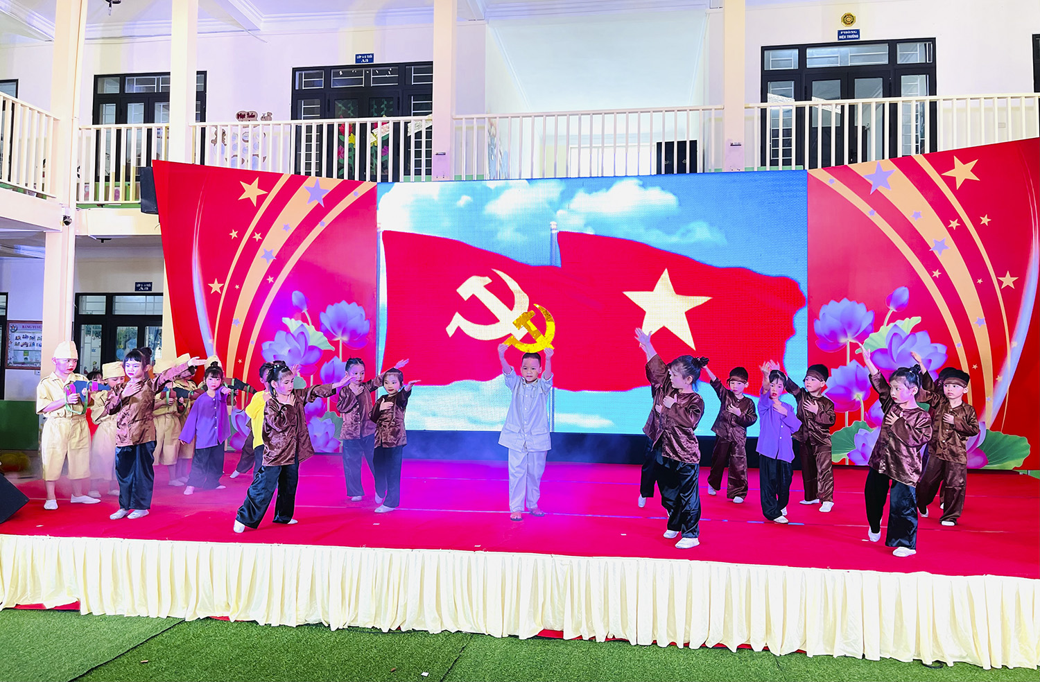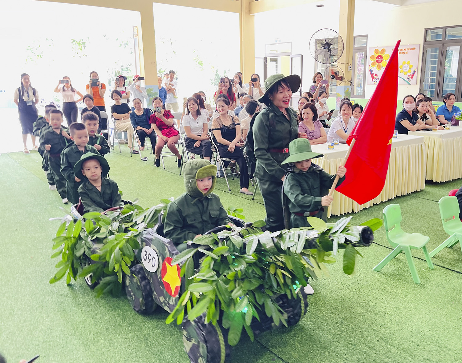 Với mục đích giáo dục lịch sử, truyền thống cho các bé ở lứa tuổi mầm non, chương trình sinh hoạt chuyên đề với chủ đề Vinh quang Việt Nam đã được thể hiện một cách sáng tạo dưới hình thức câu chuyện kể giữa bà và cháu. Lịch sử hào hùng trong suốt 4.000 năm dựng nước và giữ nước với niềm tự hào về nguồn gốc con rồng cháu tiên đến quá trình xây dựng đất nước Việt Nam hôm nay và khát vọng hùng cường được tái hiện đầy sinh động và hấp dẫn qua những tiết mục hát múa do cô và trò các trường dàn dựng và biểu diễn. Với sự chuẩn bị công phu và nghiêm túc, chương trình cũng đã mang đến những giây phút xúc động, tự hào cho các thầy cô giáo, học sinh và phụ huynh.