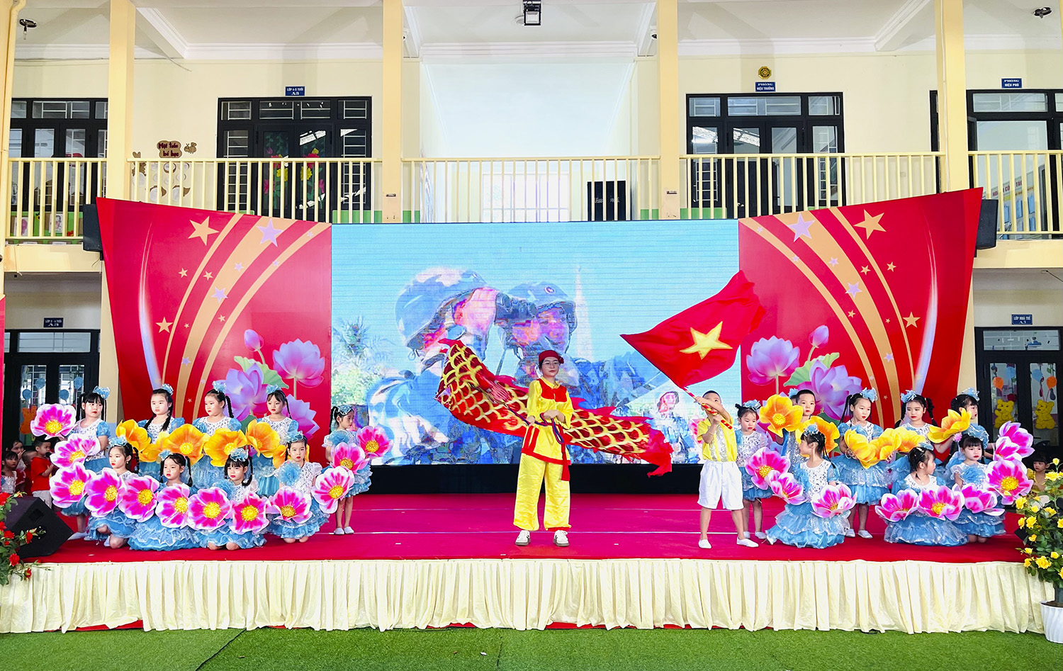 Chương trình sinh hoạt chuyên đề Vinh quang Việt Nam là hoạt động có ý nghĩa giáo dục thiết thực hướng tới chào mừng 134 năm ngày sinh chủ tịch Hồ Chí Minh (19/05/1890 - 19/05/2024). Chương trình đã mang đến những bài học thiết thực, bổ ích về lịch sử, truyền thống anh hùng bất khuất của cha ông ta và những bài học đầy ý nghĩa về tình yêu Tổ quốc cho các bé mầm non.
