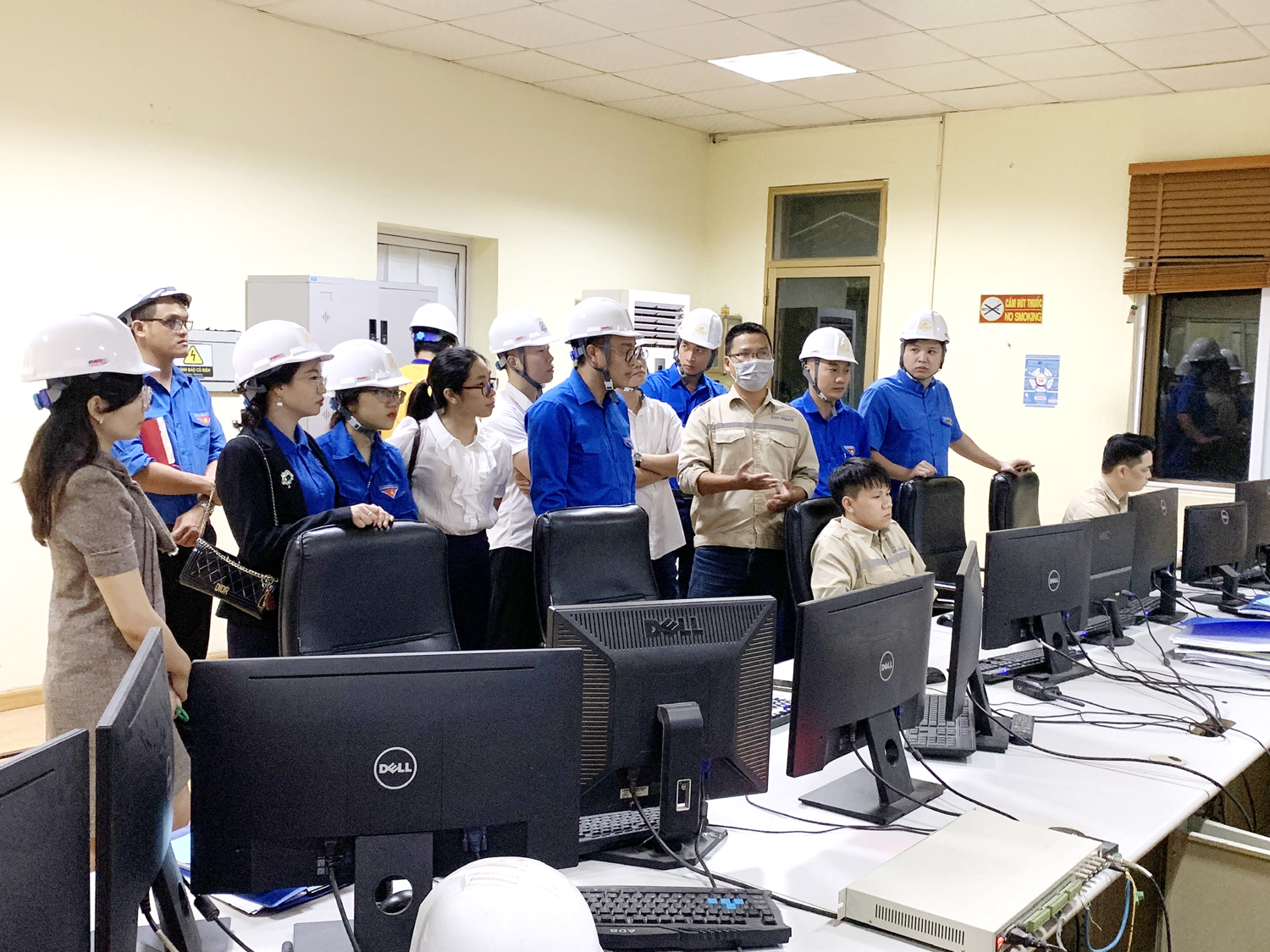 Đại biểu tham quan dây chuyền sản xuất của Công ty CP Xi măng - Xây dựng Quảng Ninh.
