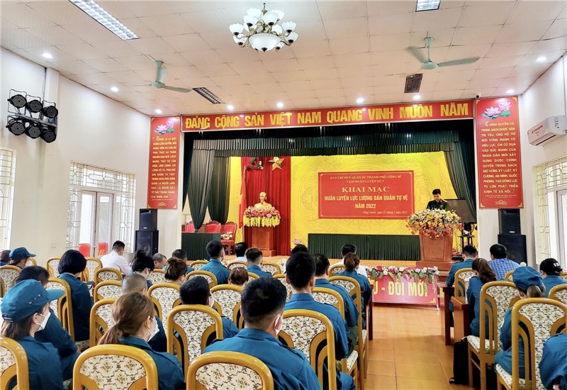 Sáng 23/5, tại phường Vàng Danh, Cụm huấn luyện số 5 tổ chức khai mạc huấn luyện lực lượng dân quân tự vệ năm 2022. Tới dự có lãnh đạo Ban CHQS thành phố, đại diện một số cơ quan, đơn vị, doanh nghiệp có lực lượng tham gia đợt huấn luyện.
