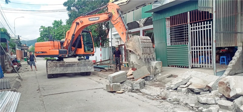Các hộ dân tổ 23, khu Phú Thanh Đông, phường Yên Thanh tự nguyện hiến đất, tháo dỡ tường rào, vật kiến trúc để thi công mở rộng đường giao thông.