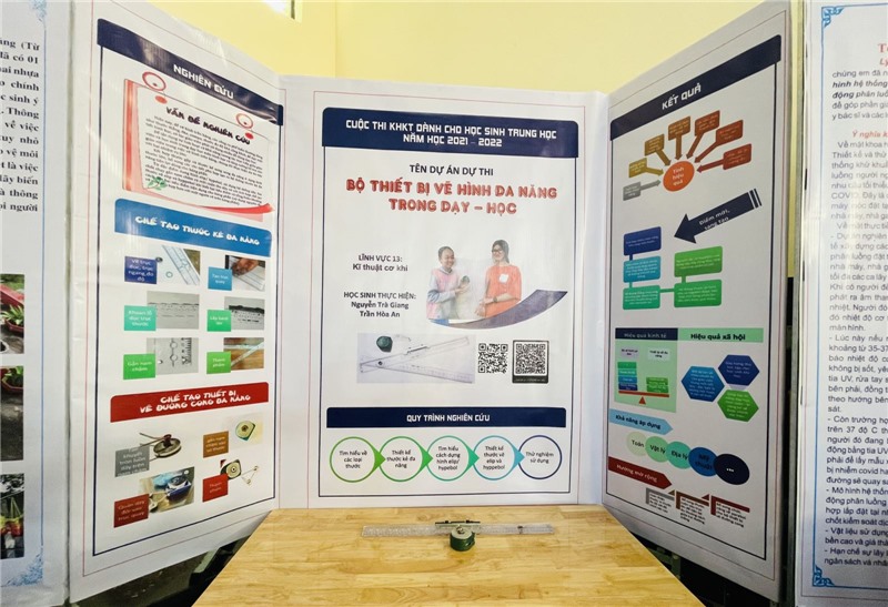 Sản phẩm Bộ thiết bị vẽ hình đa năng trong dạy học của học sinh trường Thực hành sư phạm giành giải Nhất.