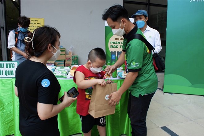 Người dân hào hứng tham gia Ngày Hội tái chế tại chung cư Rich Star 2 (quận Tân Phú, TPHCM). Ảnh: Thiên An