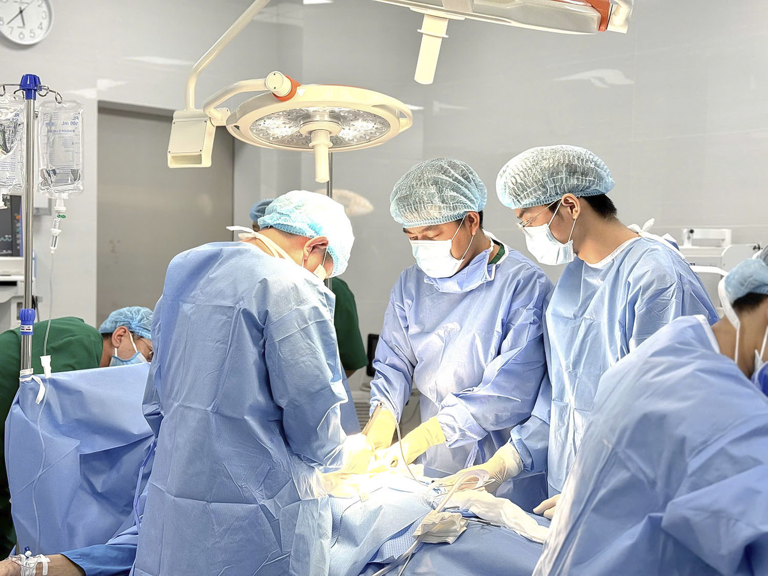 Nhận định đây là trường hợp khẩn cấp, các bác sĩ đã quyết định chỉ định phẫu thuật mổ mở để cắt bỏ khối u đại tràng và toàn bộ các khối hạch liên quan.