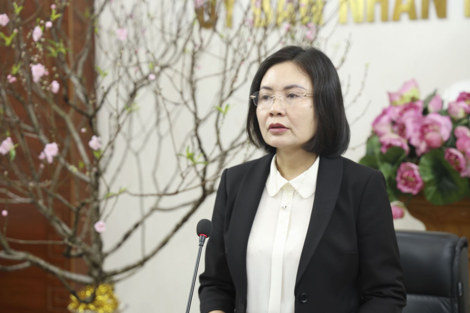 Đồng chí Vũ Thị Hồng Nhung, Phó Chủ tịch UBND phường phát biểu tại hội nghị.