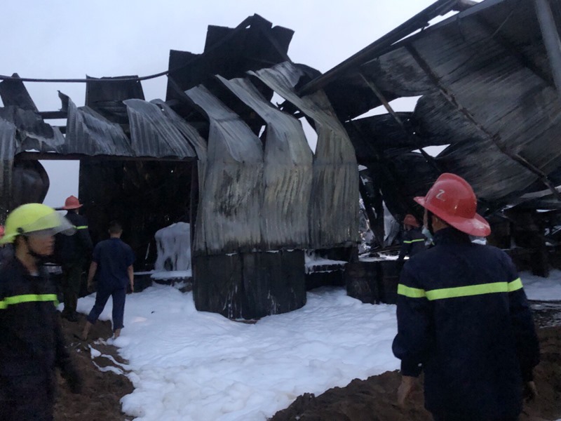 Trước đó, vào 15g25 đám cháy xảy ra trên diện tích khoảng 1.000m2 tại dây chuyền sản xuất nhựa gồm khoảng 550 tấn nhựa thông, nhà khung thép mái tôn. Đám cháy không gây thiệt hại về người.