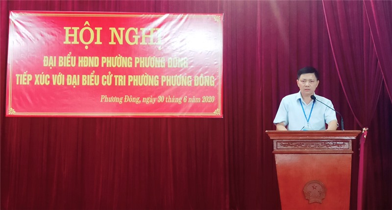 Tại buổi tiếp xúc, các đại biểu cử tri phường đã nghe thông báo về chương trình kỳ họp thứ 13 HĐND phường khóa 19; báo cáo tóm tắt về tình hình thực hiện nhiệm vụ phát triển kinh tế - xã hội 6 tháng đầu năm, phương hướng nhiệm vụ 6 tháng cuối năm 2020 của phường Phương Đông và kết quả giải quyết ý kiến, kiến nghị của cử tri tại kỳ họp trước.