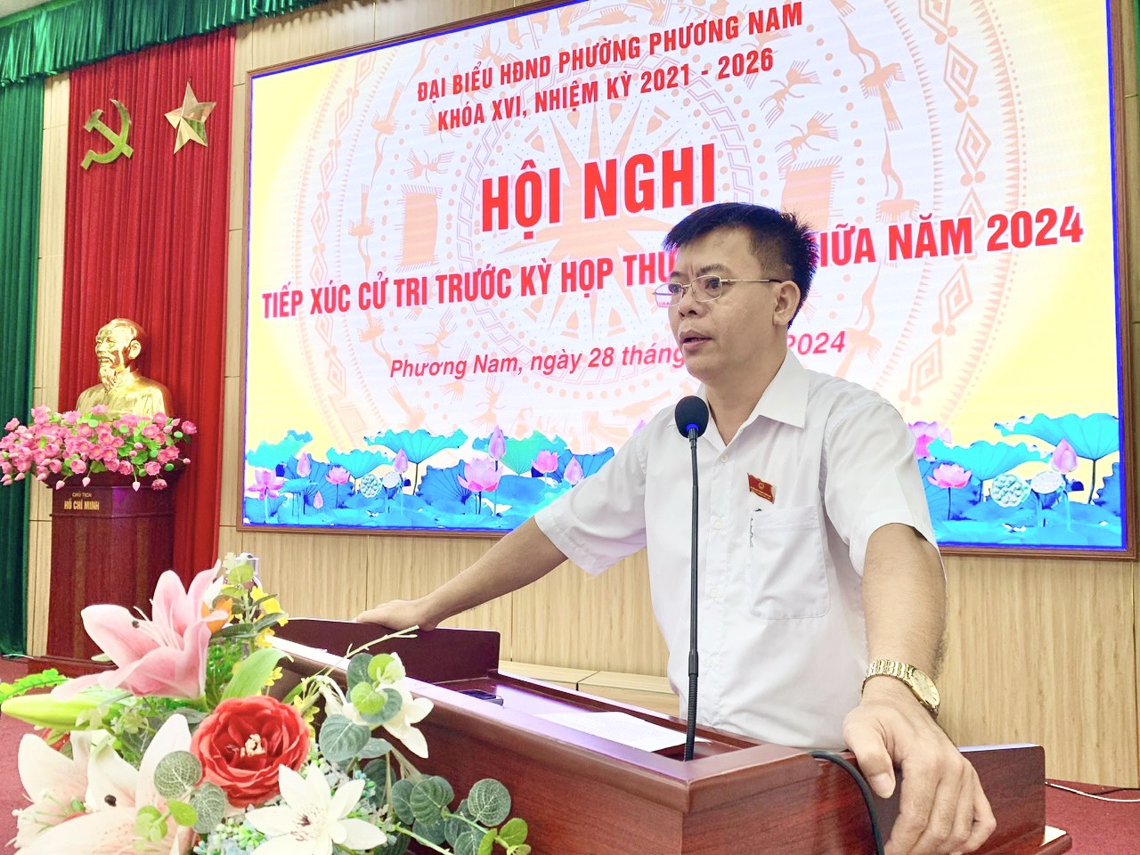 Sáng 28/6, đại biểu HĐND phường Phương Nam khoá XVI, nhiệm kỳ 2021 – 2026 đã tổ chức Hội nghị tiếp xúc cử tri trước kỳ họp thường lệ giữa năm 2024.