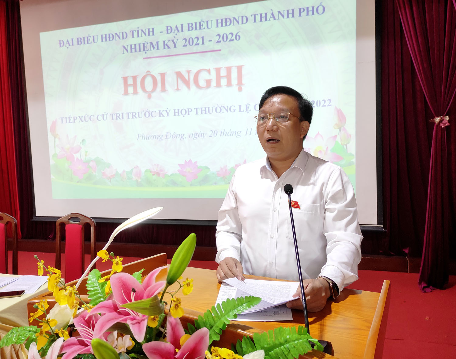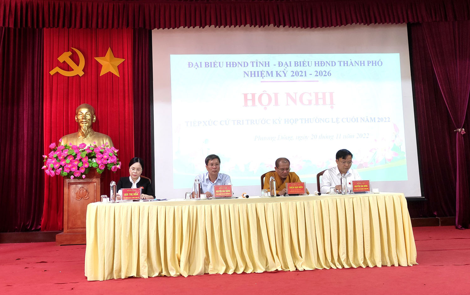 Ngày 20/11, đại biểu HĐND tỉnh và đại biểu HĐND thành phố nhiệm kỳ 2021-2026 đã có buổi tiếp xúc cử tri phường Phương Đông trước kỳ họp thường lệ cuối năm của HĐND tỉnh, thành phố. Thượng tọa Thích Đạo Hiển, Uỷ viên Hội đồng Trị sự Trung ương giáo hội Phật giáo Việt Nam - Phó Trưởng ban Giáo dục Phật giáo Trung ương, Phó Trưởng ban kiêm chánh thư ký Ban trị sự Giáo hội Phật giáo Việt Nam tỉnh Quảng Ninh, đại diện đại biểu HĐND tỉnh ứng cử trên địa bàn thành phố tiếp xúc cử tri phường Phương Đông. Về phía đại biểu HĐND thành phố có các đồng chí: Nguyễn Văn Thành, UVBTV Thành uỷ, Phó Chủ tịch Thường trực UBND thành phố; Bùi Thị Hoà, Phó Trưởng ban KT-XH HĐND thành phố; Nguyễn Văn Hưng, Bí thư Đảng uỷ, Chủ tịch UBND phường Phương Đông.