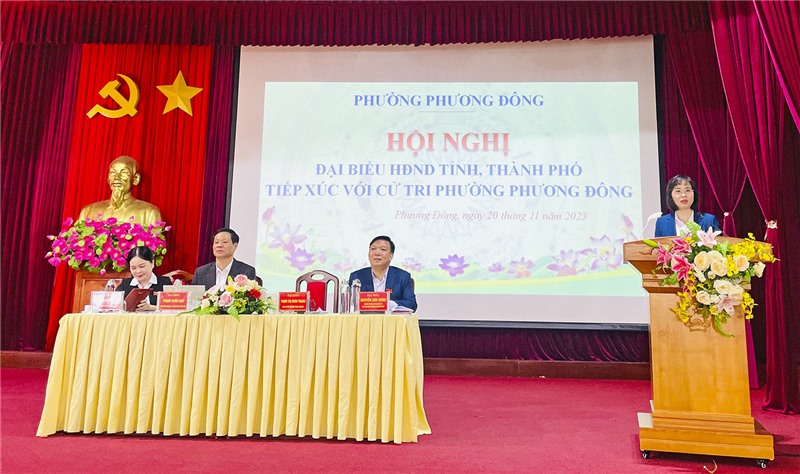 Sáng 20/11, đồng chí Trịnh Thị Minh Thanh, Phó Bí thư Thường trực Tỉnh ủy, Đại biểu HĐND tỉnh khóa XIV và đồng chí Phạm Tuấn Đạt, Phó Bí thư Thành ủy, Chủ tịch UBND thành phố cùng Tổ Đại biểu HĐND thành phố đã có buổi tiếp xúc cử tri phường Phương Đông.