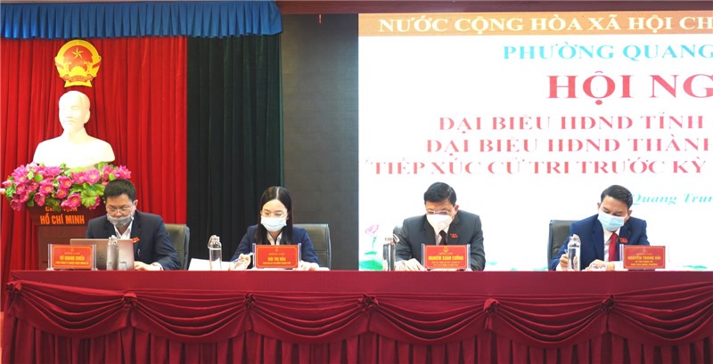 Đoàn đại biểu HĐND tỉnh, HĐND thành phố tại cuộc tiếp xúc với cử tri phường Quang Trung.