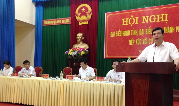 Tại buổi tiếp xúc, thay mặt tổ Đại biểu HĐND tỉnh và tổ Đại biểu HĐND thành phố, đồng chí Nguyễn Đức Long, Chủ tịch UBND tỉnh; đồng chí Nguyễn Anh Tú, Chủ tịch UBND thành phố đã báo cáo với đại biểu cử tri về tình hình phát triển kinh tế - xã hội trên địa bàn tỉnh và thành phố trong 6 tháng qua và nhiệm vụ 6 tháng cuối năm 2016.
