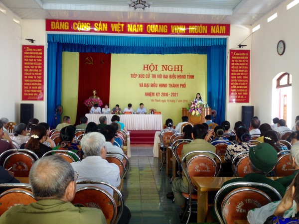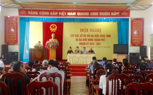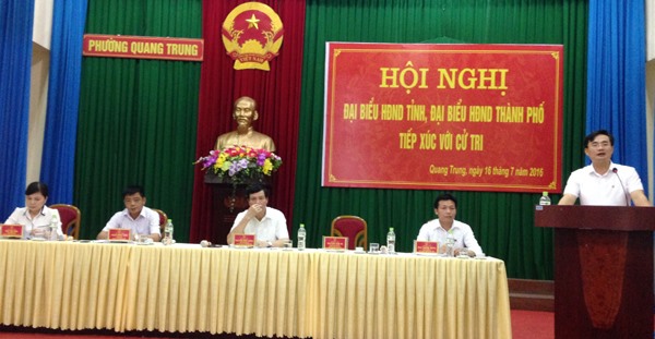 Tại buổi tiếp xúc, các đồng chí đại biểu HĐND tỉnh và đại biểu HĐND thành phố đã báo cáo với đại biểu cử tri về tình hình phát triển kinh tế - xã hội trên địa bàn tỉnh và thành phố trong 6 tháng qua và nhiệm vụ 6 tháng cuối năm 2016.