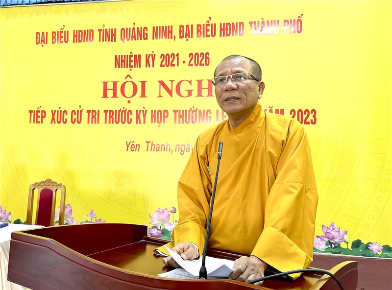 Trong chương trình, Đại đức Thích Đạo Hiển, Uỷ viên Hội đồng trị sự Trung ương Giáo hội Phật giáo Việt Nam, Phó Trưởng ban Giáo dục Phật giáo Trung ương, Phó Trưởng ban kiêm Chánh thư ký Ban trị sự Giáo hội Phật giáo Việt Nam tỉnh Quảng Ninh, đại biểu HĐND Tỉnh ứng cử trên địa bàn đã báo cáo khái quát kết quả thực hiện nhiệm vụ phát triển kinh tế - xã hội của tỉnh năm 2023, định hướng phát triển kinh tế - xã hội năm 2024; báo cáo kết quả giải quyết kiến nghị của cử tri gửi tới HĐND tỉnh.