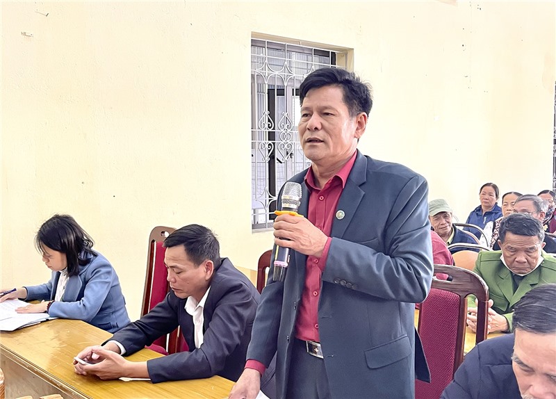 Cử tri phường Yên Thanh phát biểu ý kiến tại buổi tiếp xúc.