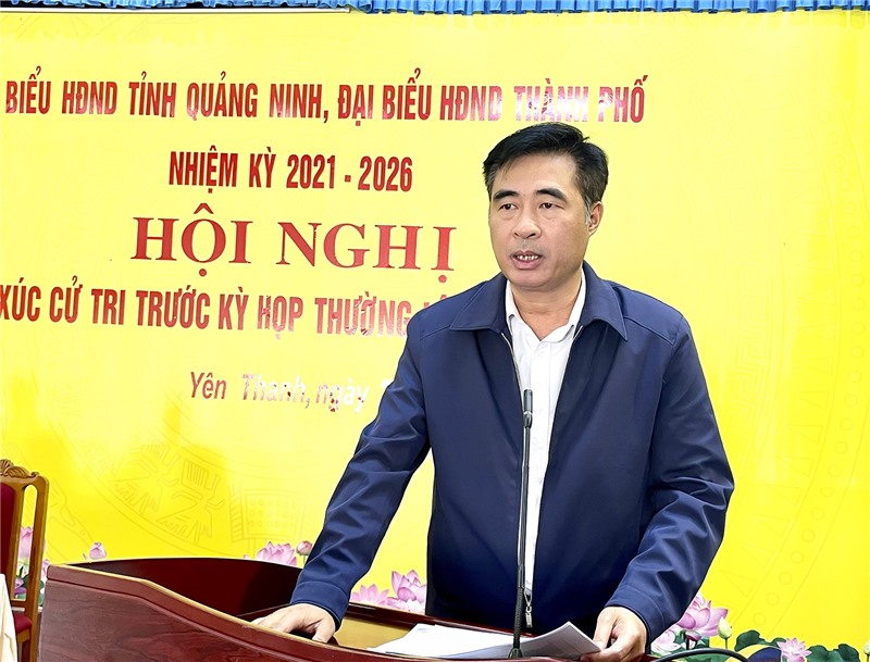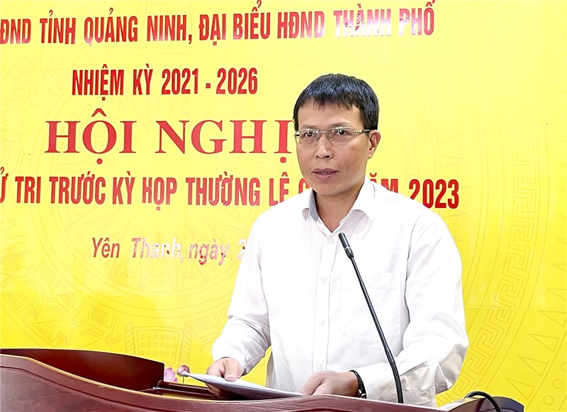 Đồng chí Nguyễn Văn Thành, Uỷ viên BTV Thành uỷ, Phó Chủ tịch Thường trực UBND thành phố, đại biểu HĐND thành phố ứng cử trên địa bàn đã thông báo tới các đại biểu cử tri phường Yên Thanh kết quả thực hiện nhiệm vụ phát triển kinh tế - xã hội của thành phố năm 2023, định hướng phát triển kinh tế - xã hội năm 2024; báo cáo kết quả giải quyết các ý kiến, kiến nghị của cử tri gửi đến HĐND thành phố.