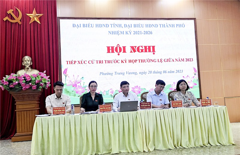 Ngày 20/6, đồng chí Nghiêm Xuân Cường, Tỉnh ủy viên, Bí thư Thành ủy, Chủ tịch HĐND thành phố, Tổ trưởng tổ đại biểu HĐND tỉnh ứng cử trên địa bàn cùng tổ đại biểu HĐND thành phố (nhiệm kỳ 2021-2026) đã có buổi tiếp xúc cử tri phường Trưng Vương trước kỳ họp thường lệ giữa năm 2023.