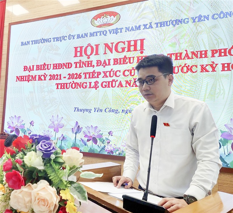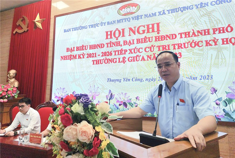 Phát biểu tại buổi tiếp xúc, Phó Chủ tịch UBND thành phố Bùi Văn Thành ghi nhận, đánh giá cao những ý kiến tâm huyết, trách nhiệm của cử tri xã Thượng Yên Công; đồng thời trao đổi, giải đáp, làm rõ từng nội dung cử tri kiến nghị, phản ánh. Những nội dung liên quan đến trách nhiệm của địa phương, đồng chí đề nghị lãnh đạo xã phối hợp với các phòng, ban chuyên môn của thành phố kiểm tra, xử lý dứt điểm trong thời gian sớm nhất, đáp ứng nguyện vọng của cử tri.