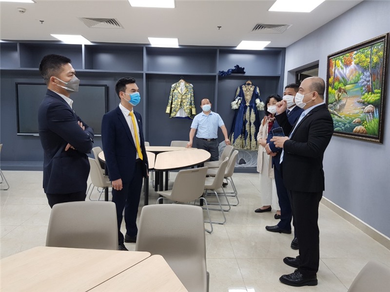 Tiến sĩ Vũ Văn Viện, Trưởng Khoa Du lịch, Đại học Hạ Long (ngoài cùng, bên phải) giới thiệu không gian văn hóa các nước nói tiếng Anh cho đại biểu Sun Group vùng Đông Bắc.