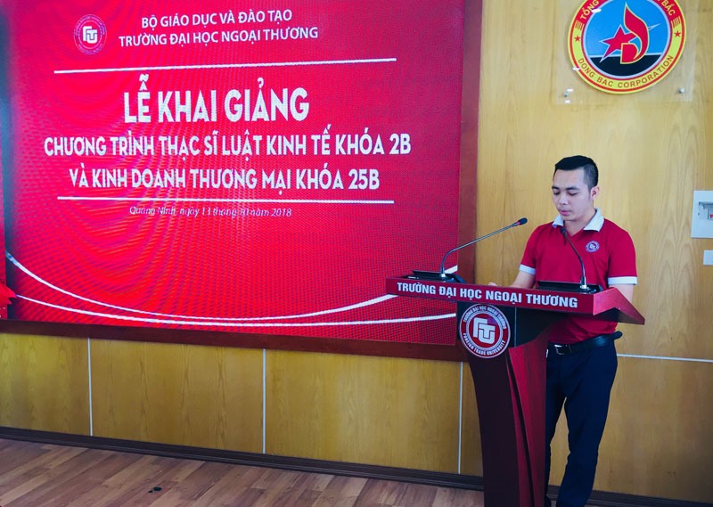Vừa qua, Trường Đại học Ngoại thương cơ sở Quảng Ninh tổ chức khai giảng chương trình thạc sỹ Luật kinh tế 2B và Kinh doanh thương mại 25B.