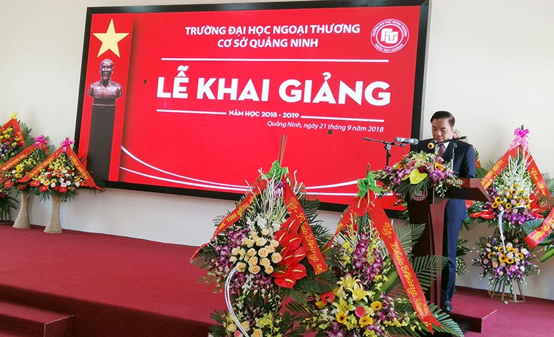 Ngày 21-9, Trường Đại học Ngoại thương cơ sở Quảng Ninh tổ chức lễ khai giảng năm học mới 2018-2019. Đồng chí Ngô Văn Hợi, Phó Giám đốc Sở Giáo dục - Đào tạo tỉnh Quảng Ninh dự chúc mừng.