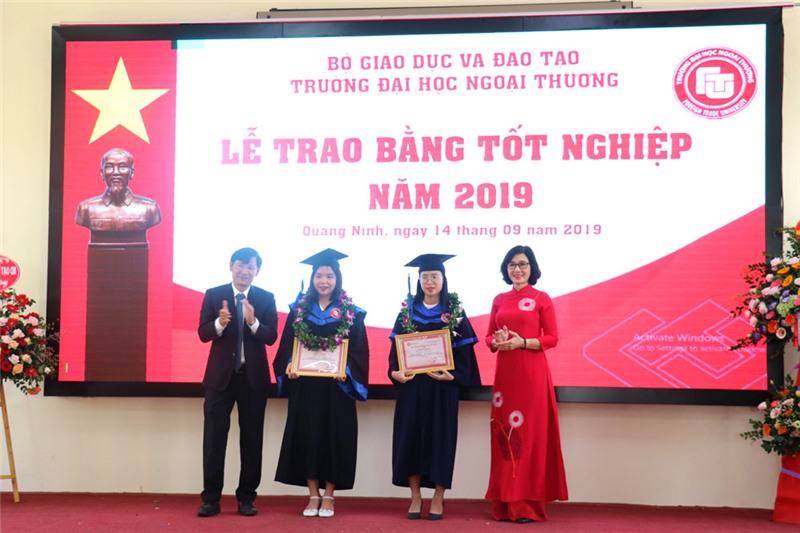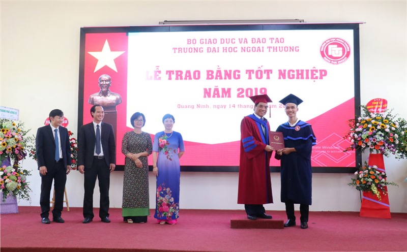 Cũng tại buổi lễ, Nhà trường đã công nhận, trao bằng tốt nghiệp cho 169 sinh viên chính quy khóa 52, 53, 54 các chuyên ngành: Kinh doanh quốc tế, Kế toán kiểm toán, Quản trị du lịch và khách sạn tại Cơ sở Quảng Ninh.