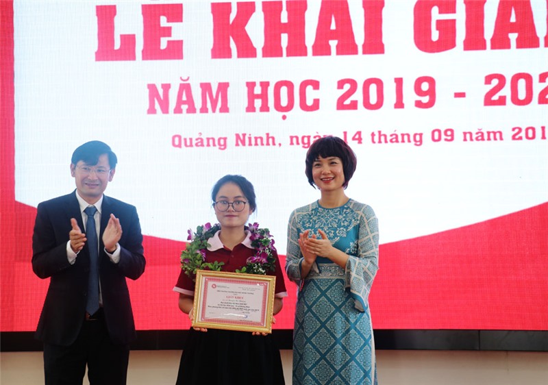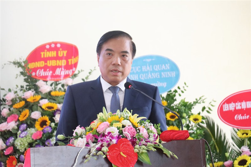 Phó Chủ tịch UBND tỉnh Quảng Ninh tặng hoa chúc mừng Nhà trường.