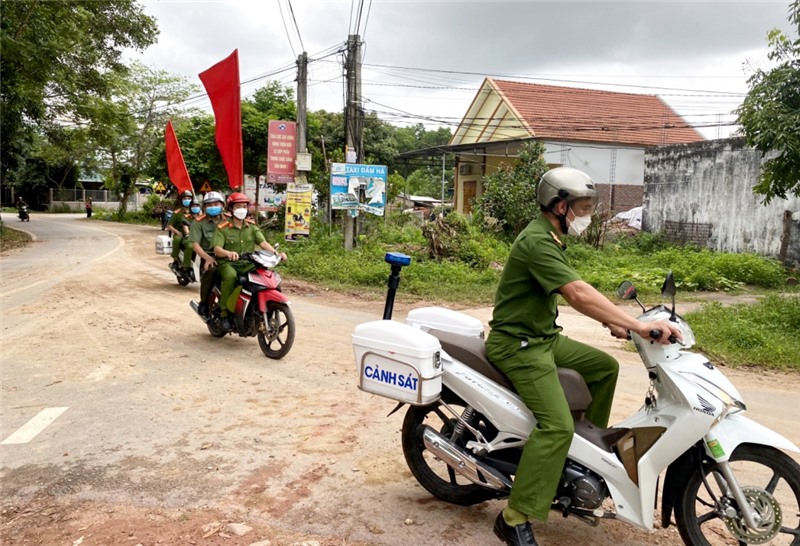 Công an huyện Đầm Hà tuần tra, kiểm soát tại địa bàn dân cư.