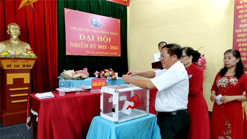 Các đảng viên Chi bộ khu phố Thống Nhất, thị trấn Tiên Yên, huyện Tiên Yên, bỏ phiếu bầu bí thư chi bộ tại đại hội.