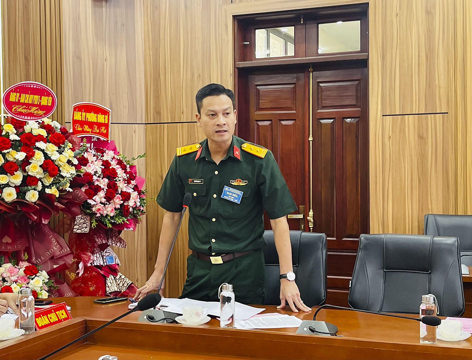 Lãnh đạo Ban Chỉ huy Phòng thủ khu vực 5 - Quảng Yên tặng hoa chúc mừng Đại hội.