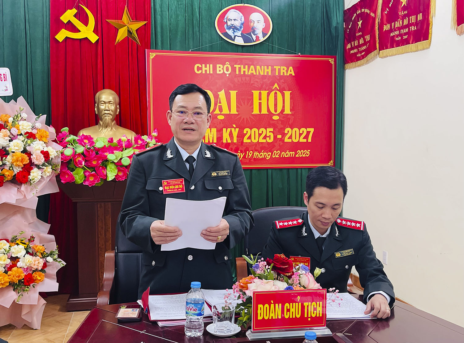 Tại đại hội, Chi bộ đã thực hiện quy trình bầu Bí thư Chi bộ nhiệm kỳ 2025 – 2027 và bầu đoàn đại biểu đi dự Đại hội Đảng bộ cấp trên. Đồng chí Bùi Văn Quảng tiếp tục được tín nhiệm bầu giữ chức Bí thư Chi bộ Thanh tra nhiệm kỳ 2025 - 2027.