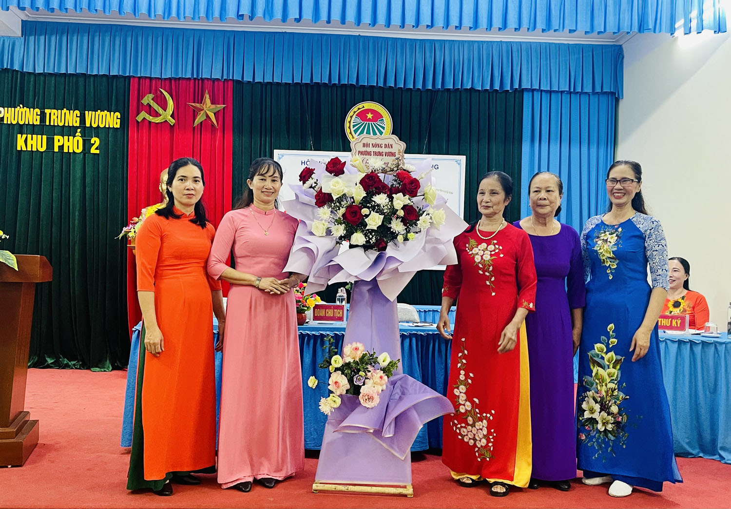 Lãnh đạo Hội Nông dân phường Trưng Vương tặng hoa chúc mừng Đại hội.