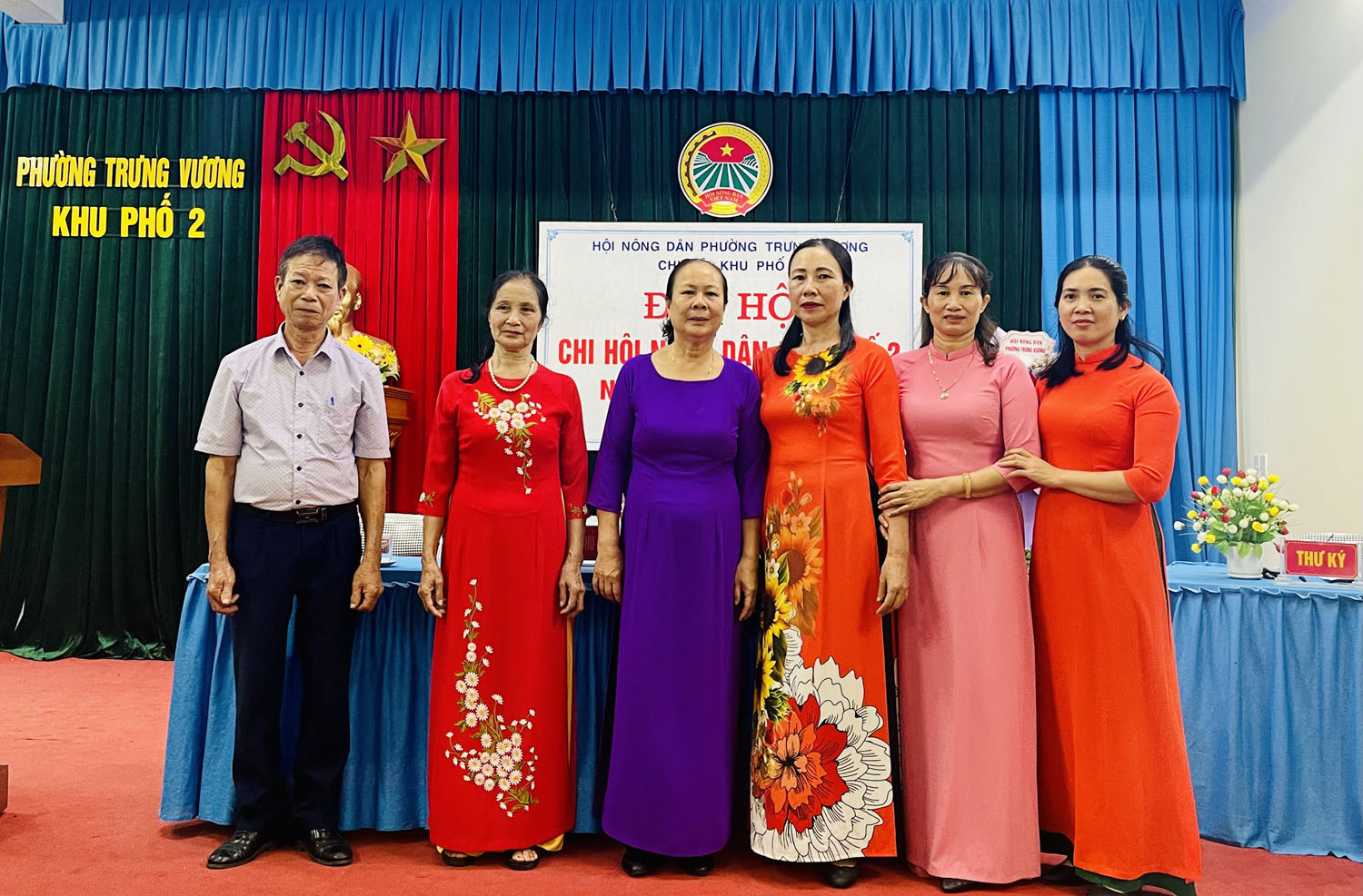 Lãnh đạo Hội Nông dân phường Trưng Vương chụp ảnh lưu niệm cùng BCH Chi hội nhiệm kỳ 2022-2027.