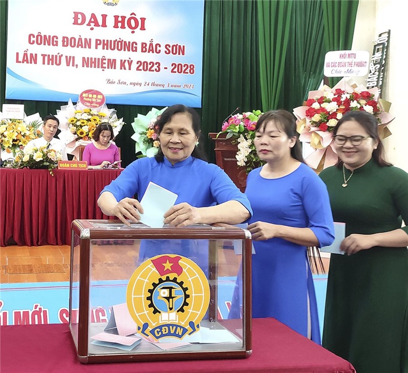 Với tinh thần tập trung dân chủ, các đại biểu đã bỏ phiếu bầu BCH công đoàn phường Bắc Sơn khoá VI gồm 3 đồng chí, bầu đoàn đại biểu đi dự Đại hội công đoàn cấp trên. Đồng chí Trần Huy Anh tiếp tục được bầu giữ chức chủ tịch công đoàn phường Bắc Sơn.