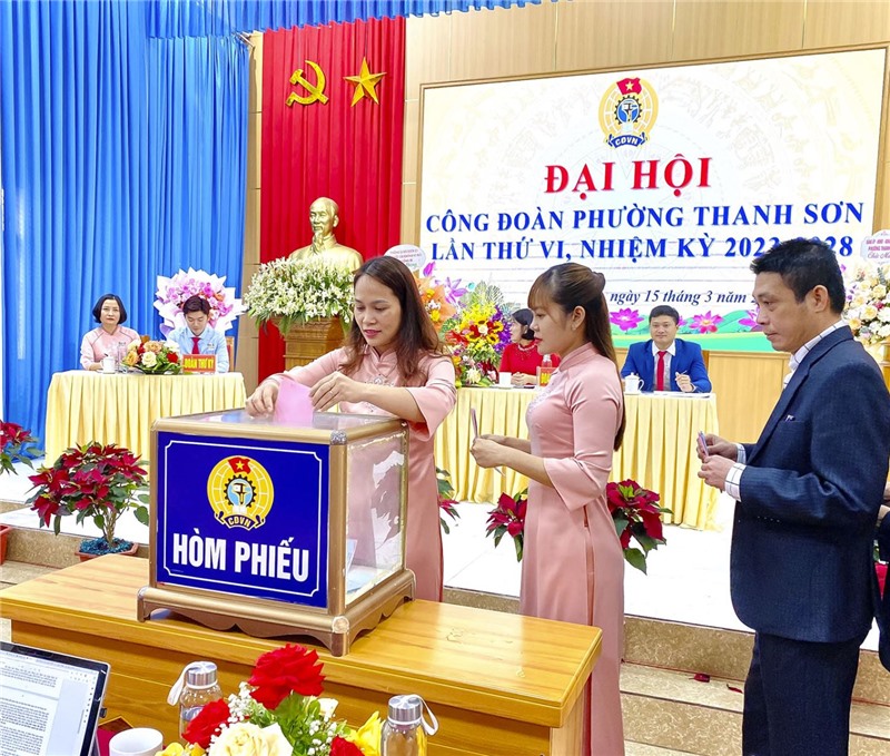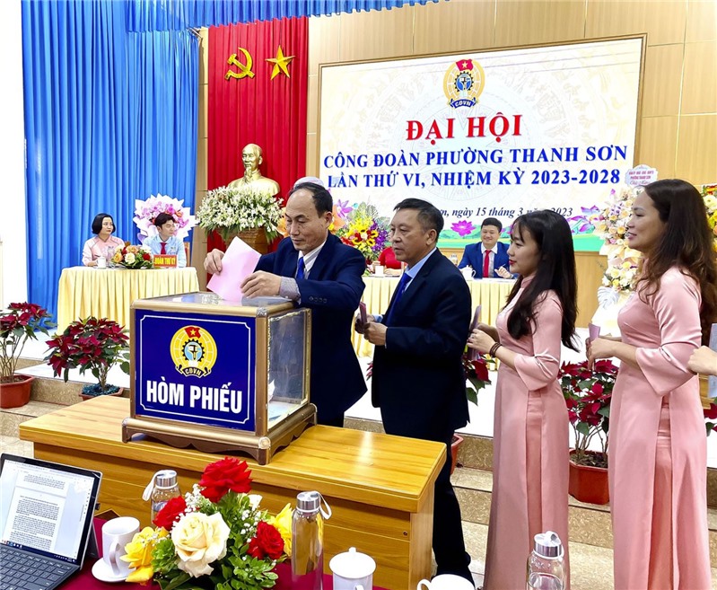 Trên tinh thần dân chủ, Đại hội đã bầu Ban chấp hành Công đoàn phường khoá VI, nhiệm kỳ 2023-2028 gồm 5 đồng chí; bầu đoàn đại biểu đi dự đại hội đại biểu công đoàn Thành phố. Đồng chí Phạm Hoàng Huyên tiếp tục tái cử giữ chức Chủ tịch Công đoàn phường Thanh Sơn khoá VI, nhiệm kỳ 2023-2028.
