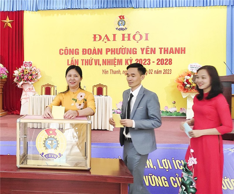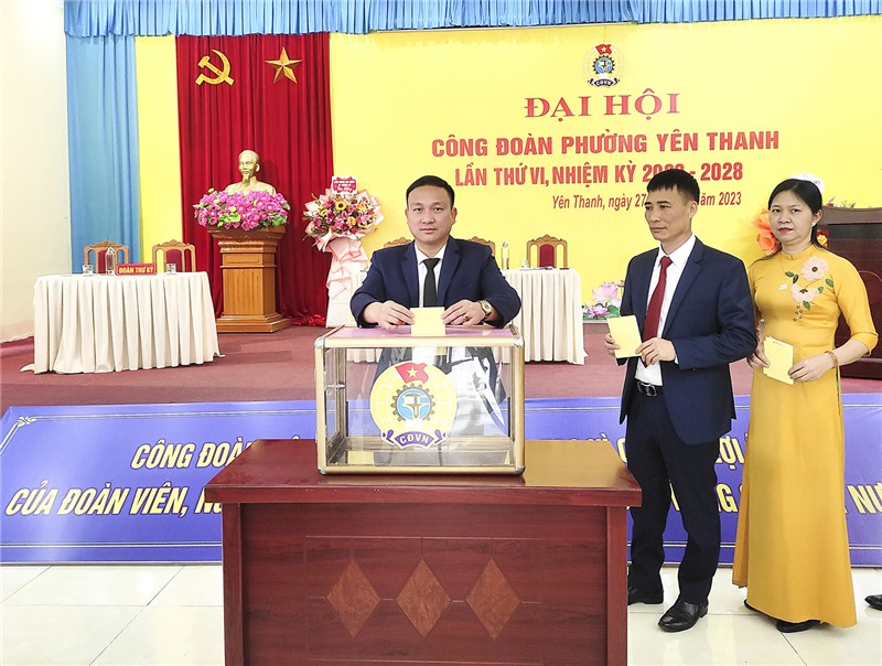 Tại đại hội, với tinh thần tập trung, dân chủ, các đại biểu đã bầu BCH công đoàn phường Yên Thanh khóa VI nhiệm kỳ 2023-2028 gồm 5 đồng chí, bầu đoàn Đại biểu đi dự ĐH cấp trên. Đại hội cũng đã quyết nghị thông qua Nghị quyết về mục tiêu, phương hướng, nhiệm vụ, giải pháp công tác công đoàn phường Yên Thanh nhiệm kỳ 2023-2028.