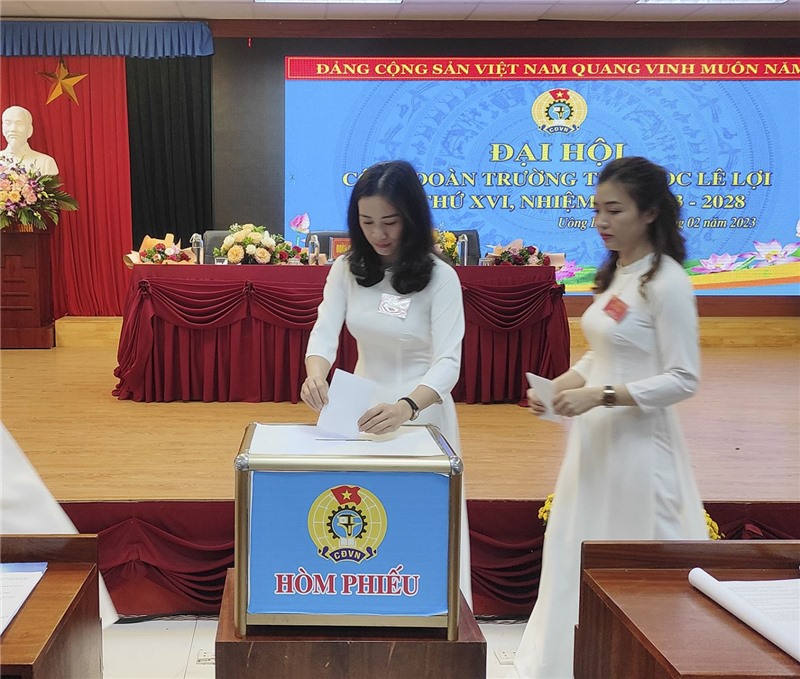 Tại Đại hội, phát huy tinh thần tập trung dân chủ, các đại biểu đã bầu BCH Công đoàn Trường Tiểu học Lê Lợi khoá XVI gồm 5 đồng chí và bầu đoàn đại biểu đi dự Đại hội Công đoàn thành phố.