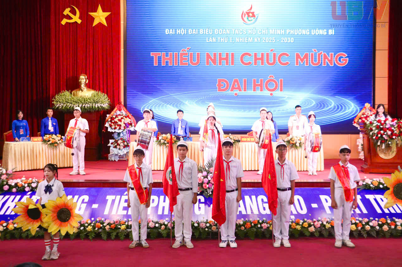 Đoàn đại biểu thiếu niên, nhi đồng phường Uông Bí chúc mừng Đại hội.