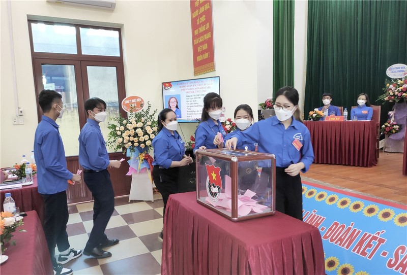 Các đại biểu bỏ phiếu bầu BCH đoàn phường khoá XIII, bầu trực tiếp Bí thư tại Đại hội, bầu đoàn Đại hội đi dự Đại hội đoàn cấp trên.